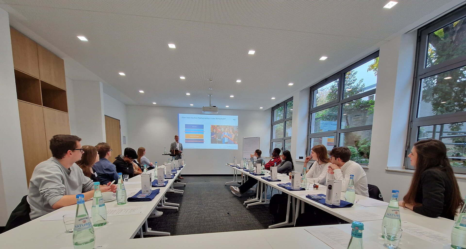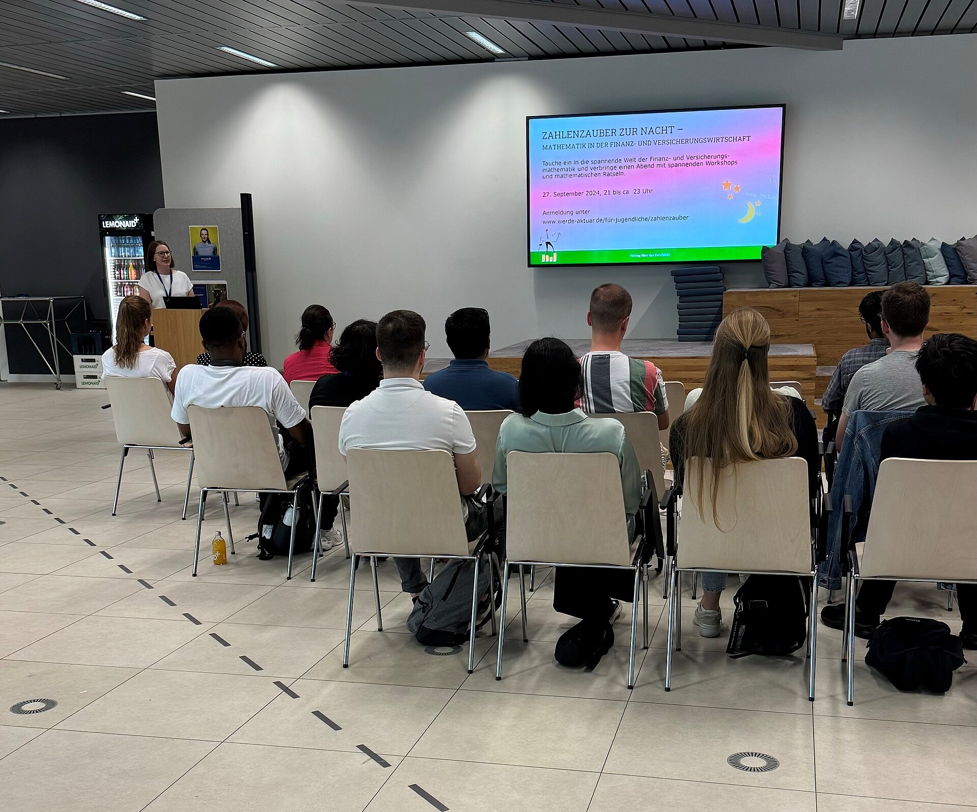 Im Rahmen eines Unternehmensbesuches erhalten die Teilnehmer*innen zum einen Informationen zur Ausbildung zum Aktuar DAV / zur Aktuarin DAV sowie zu möglichen Karrierechancen, zum anderen können sie sich anhand von Berichten praktizierender Aktuar*innen ein realistisches Bild vom zukünftigen Berufsalltag bilden. Abgerundet wird die Veranstaltung meist durch interaktive Workshops in Kleingruppen, in denen unter Anleitung mithilfe von Fallbeispielen aktuelle Themen aus der Versicherungswelt selbstständig bearbeitet werden können.